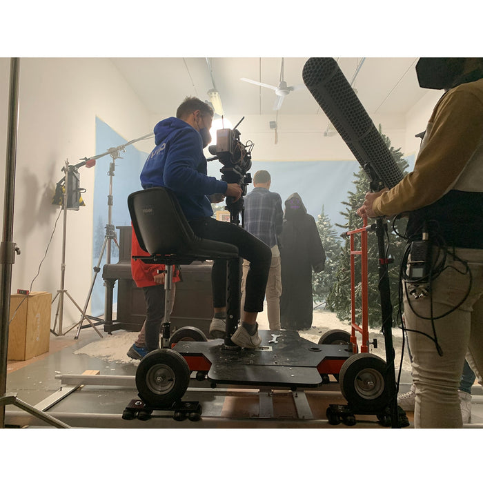 We understand how tiring a whole day shooting can be. The Quad Dolly comes with a thickly padded cushioned seat which provides exceptionally comfortable seating to the camera operator.