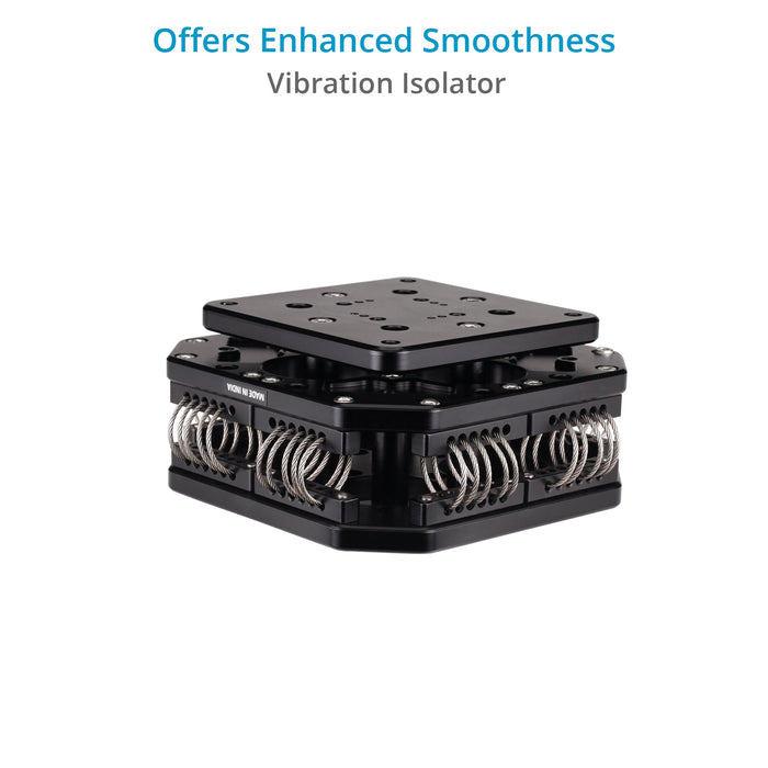 When coupled with the optional Proaim Pro Vibration Isolator, it further softens the vibrations and sustains excessive shock from a fast-moving vehicle or uneven terrain.