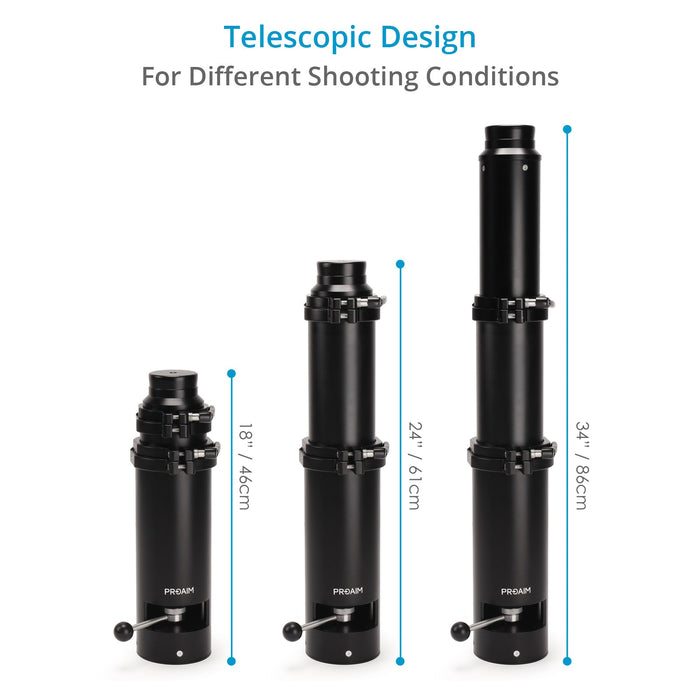 Proaim Bull Telescopic Bazooka is a 2 stage riser that incorporates massive strength, quality construction and ultra-versatility into its modular design.