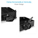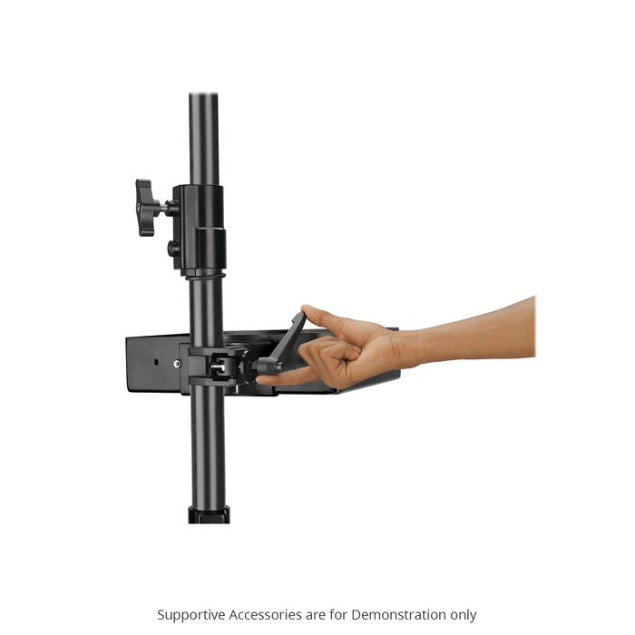 It gets clamped to tripods or sturdy stands, allowing you to move the tray around the set without tiring out your hands or carrying it in a bag.