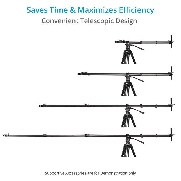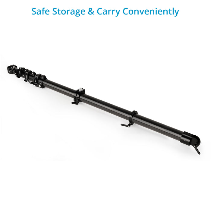 You don’t need to worry about the extra jib sections or keeping it extended when not in use at congested shoot sites. Just slide in/out when required.