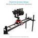 This slider can be mounted on the dolly and stay all day. The low profile of the slider allows you to take low shots to create a more dramatic effect when needed.