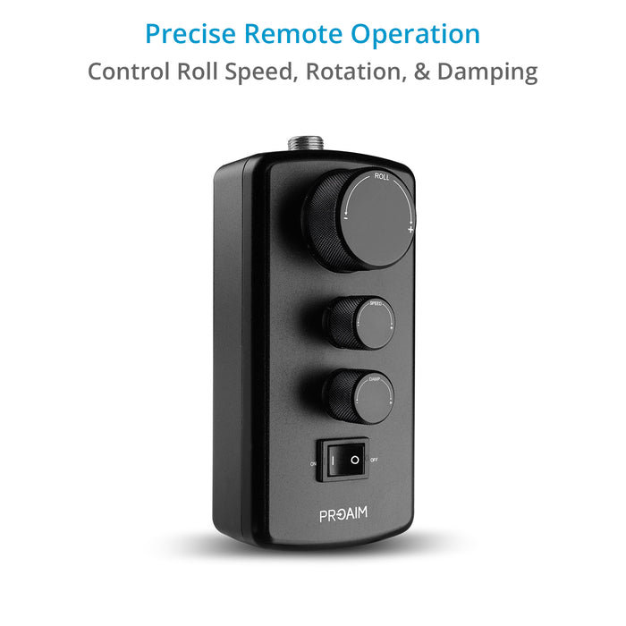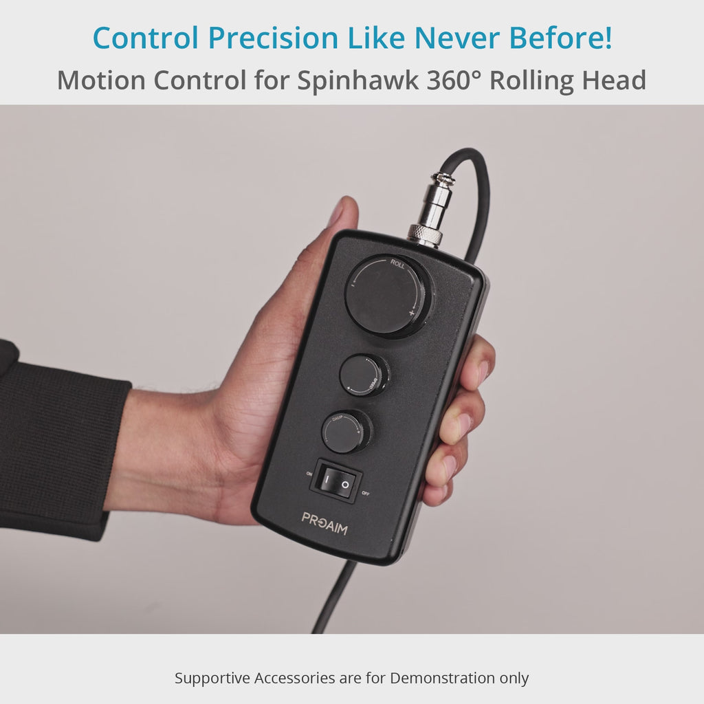 The Proaim Motion Control gives you remote, precise control over the Spinhawk 360° Rolling Video Camera Head, allowing you to effortlessly adjust speed, rotation, and damping for flawless cinematic shots and smooth, controlled rotations.