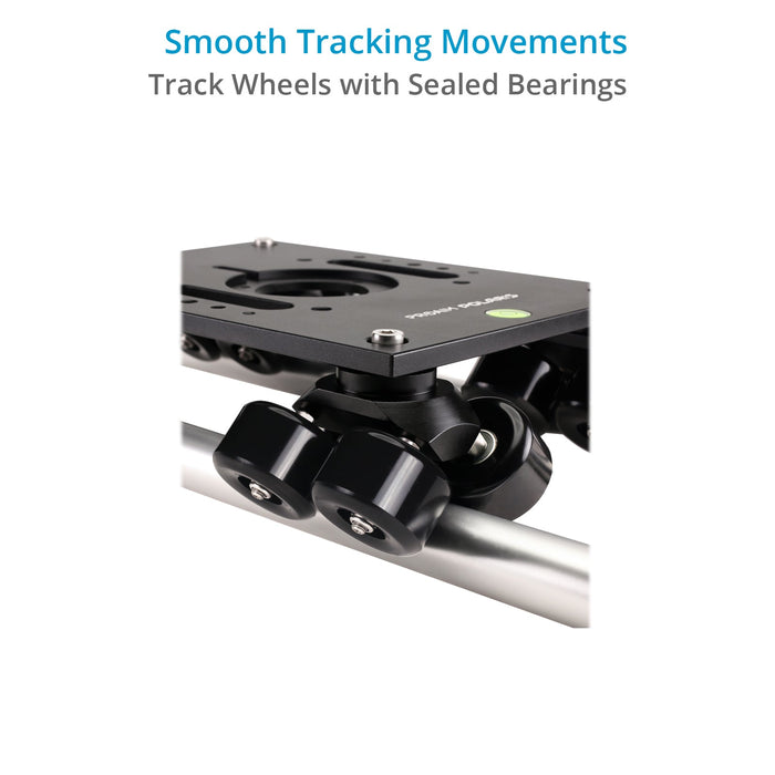 Proaim Polaris Dolly has track ends with 6inch height, hence you can shoot upto 6inch height above the ground.