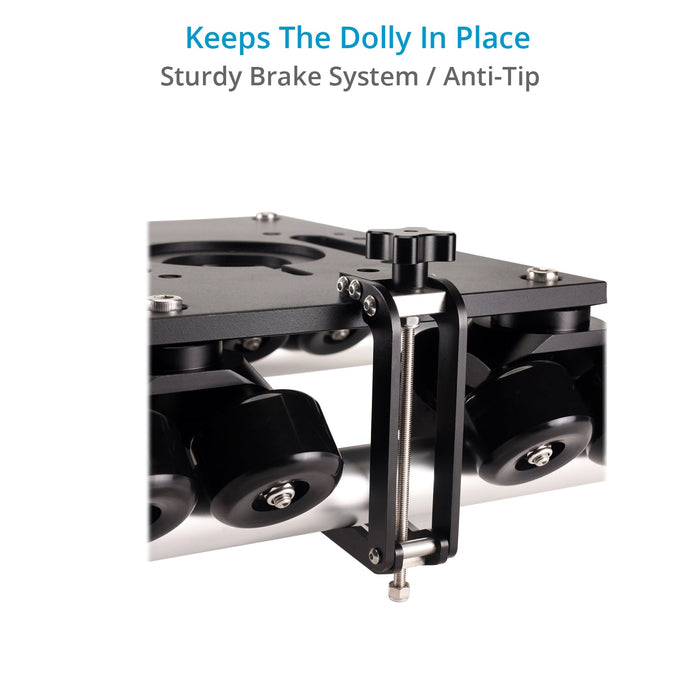 The Universal Track Ends of Proaim Polaris Dolly have a height of 6 inches above the ground. Hence, you can place the Polaris Dolly at a height of 6 inches above the ground while filming.