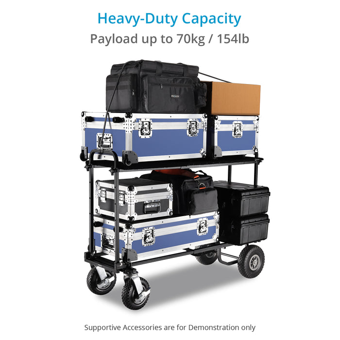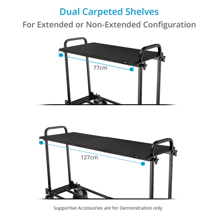 Transform your Vanguard UC5 Production Cart into a mobile workstation with the Proaim Utility Shelf. Designed for quick installation between cart handles, this shelf provides a rugged, carpeted surface for all your gear and equipment, delivering the flexibility, strength, and convenience it brings to your workflow.