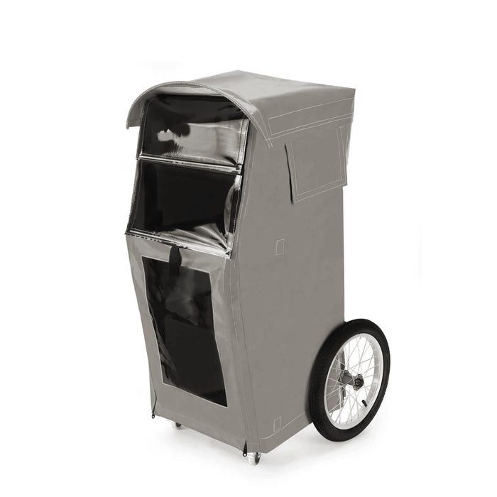 Two removable top hoods allow water/sand/snow to run off. They get easily attached to the cart head through Velcro present on the side panels.